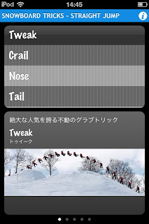 先日、TRANSのつぶやきで知ったんですが、Snowboardのトリックが動画で見れるiPhoneアプリが出たそうです。